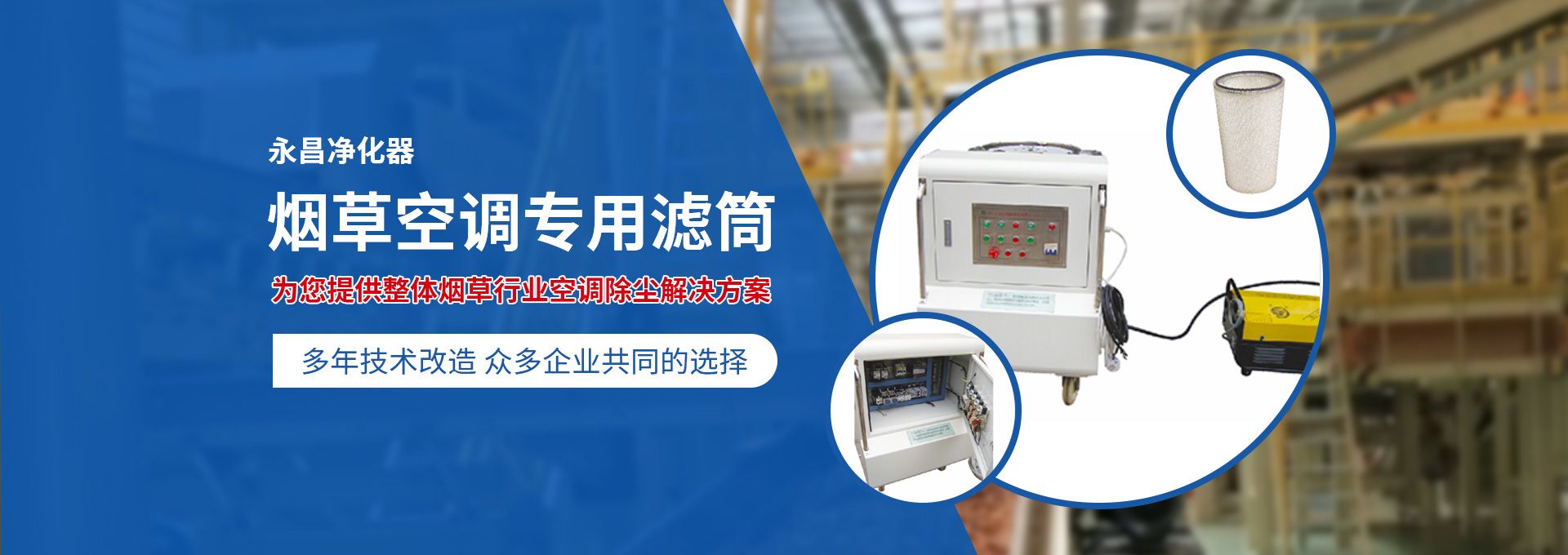 新鄉(xiāng)市永昌凈化器有限公司是生產(chǎn)煙草行業(yè)空調(diào)除塵專用濾筒的企業(yè)。注冊資金1000萬元。已通過ISO9001國際質(zhì)量管理體系認(rèn)證。對產(chǎn)品有嚴(yán)格的管理制度和售后服務(wù)。我公司以誠信、負(fù)責(zé)、守信譽(yù)、重質(zhì)量的精神所生產(chǎn)的產(chǎn)品,近幾年來在煙草行業(yè)受到廣泛應(yīng)用,并受到用戶的一致好評。 從一九九四年以來為煙廠的空調(diào)設(shè)備服務(wù)。十幾年來,我們不斷走出去請進(jìn)來學(xué)習(xí)新技術(shù)。定期到用戶那里咨詢情況:互相交流,認(rèn)真聽取寶貴意見,不斷提高產(chǎn)品質(zhì)量。從經(jīng)濟(jì)和安全,方便的角度出發(fā),根據(jù)煙廠濕度大的生產(chǎn)環(huán)境和濾筒收集到的含酸堿、氧化劑的粉塵。在空調(diào)箱工作狀態(tài)下我們頂著巨大的風(fēng)壓危險(xiǎn)在箱內(nèi)停留了幾分鐘,認(rèn)真查看濾筒工作情況,發(fā)現(xiàn)濾筒有并死狀態(tài),造成濾筒不過濾、不過風(fēng)、壓差高的現(xiàn)象。經(jīng)幾十次試驗(yàn)分析,在標(biāo)本兼治的原則下,有針對性的解決了這一問題?! ∥夜踞槍煆S制絲、卷接包、混絲間、儲絲房、冷卻床、梗膨化等不同的生產(chǎn)環(huán)境,